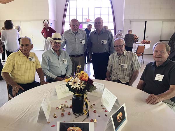 Standing:  Rowland Harvey, Morris Cranmer, Mary Lou (Burton) Stellman, Michael Paulsen, Phyllis (Ryon) Hill, Pearl (Granger) Koronczok, Wilbert Treybig, Don Wehmeyer, Walter Rabke, Bobby Joe Paul, Barbara (Hedrick) Lucas, Clyde Dabbs, Jerry Weaver, Oscar "Sonny" Gottschalt, Kenneth Henderson