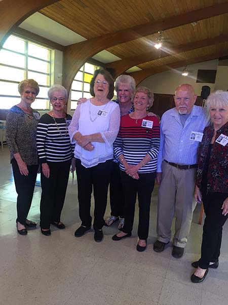 Front:  Jean (Little) Gear, Mary Jane (Nunley) Wittnebert, Bernice (Malchar) Mobley, Carol Jean (Moore) Richardson, Alma (Drouin) Hawes, Kathy (Allen) Musso, Archie Dworaczyk, Tom Cornett